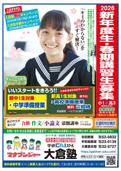 - 無料体験学習(要予約)と新規入会はいつでも受付しております。